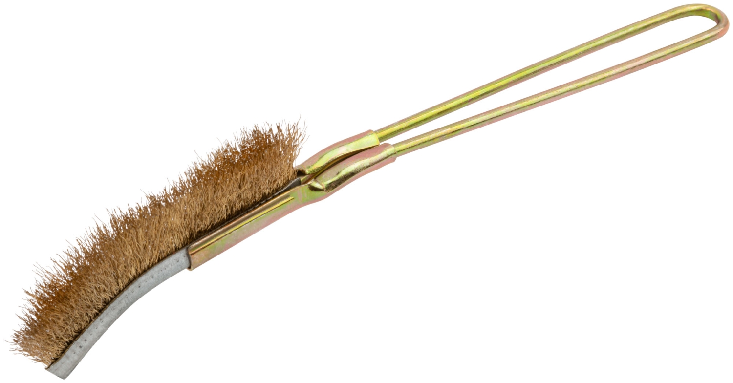 Корщетка мини изогнутая. Для снятия старой краски, ржавчины, зачистки мелких деталий, в т.ч. в труднодоступных местах. Материал: инструментальная сталь.