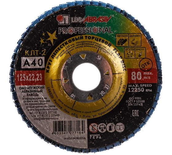 Круг лепестковый конический 125х22 мм A 40 КЛТ2 Луга