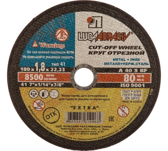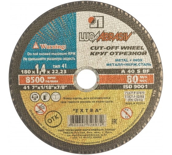 Круг отрезной мет+нерж A 40 S BF 80 Луга