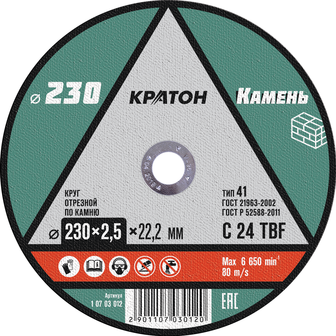 Круг отрезной по камню 230х2,5х22,2 мм С24TBF Кратон 1 07 03 012 1 шт.