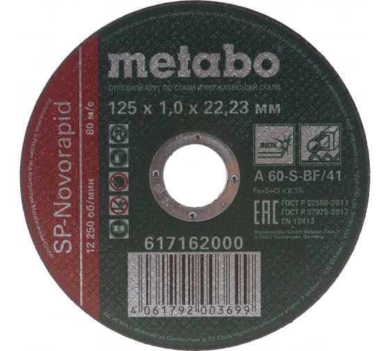 | Круг отрезной по металлу 125х1,2х22,2 мм МЕТАВО | 617177000 | 1 шт. |