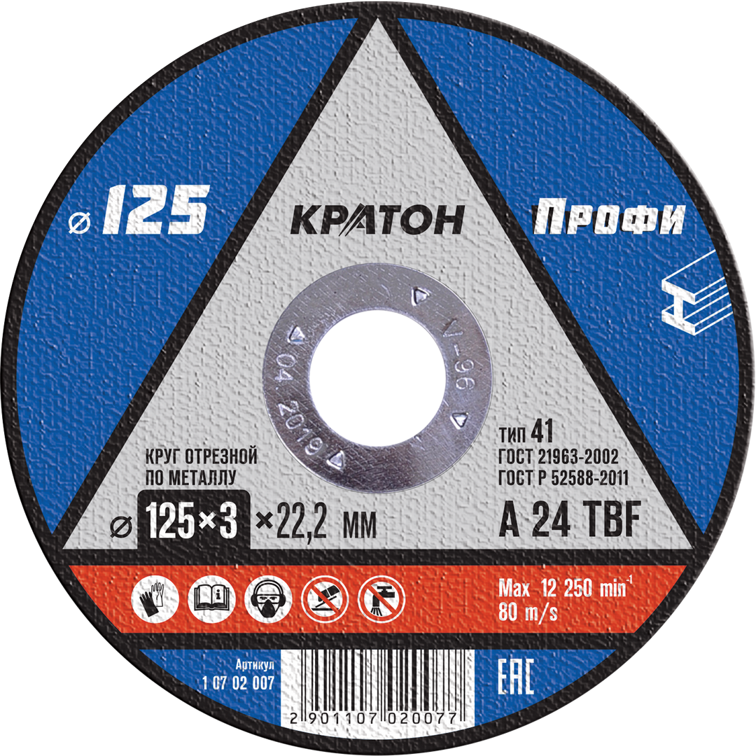 Круг отрезной Кратон «Профи» A 24 TBF 125х3,0х22,2 мм предназначен для точной резки и качественной обработки заготовок из металла и сплавов, нарезки металлопрофилей, труб. Диск по металлу используется для работы на высоких скоростях. Армирование стекловолоконной сеткой придает изделию прочности, устойчивости к механическим повреждениям и упругости. Абразивный инструмент применяется в качестве расходной режущей детали для угловых ручных шлифмашин (болгарок) с подходящим диаметром шпинделя.