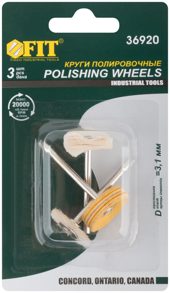 Набор 3 шт. Для гравировальной машины. Предназначен для полирования. D хвостовика=3,1 мм. Материал: хлопок, шерсть, поролон, инструментальная сталь. Упаковка: блистер.