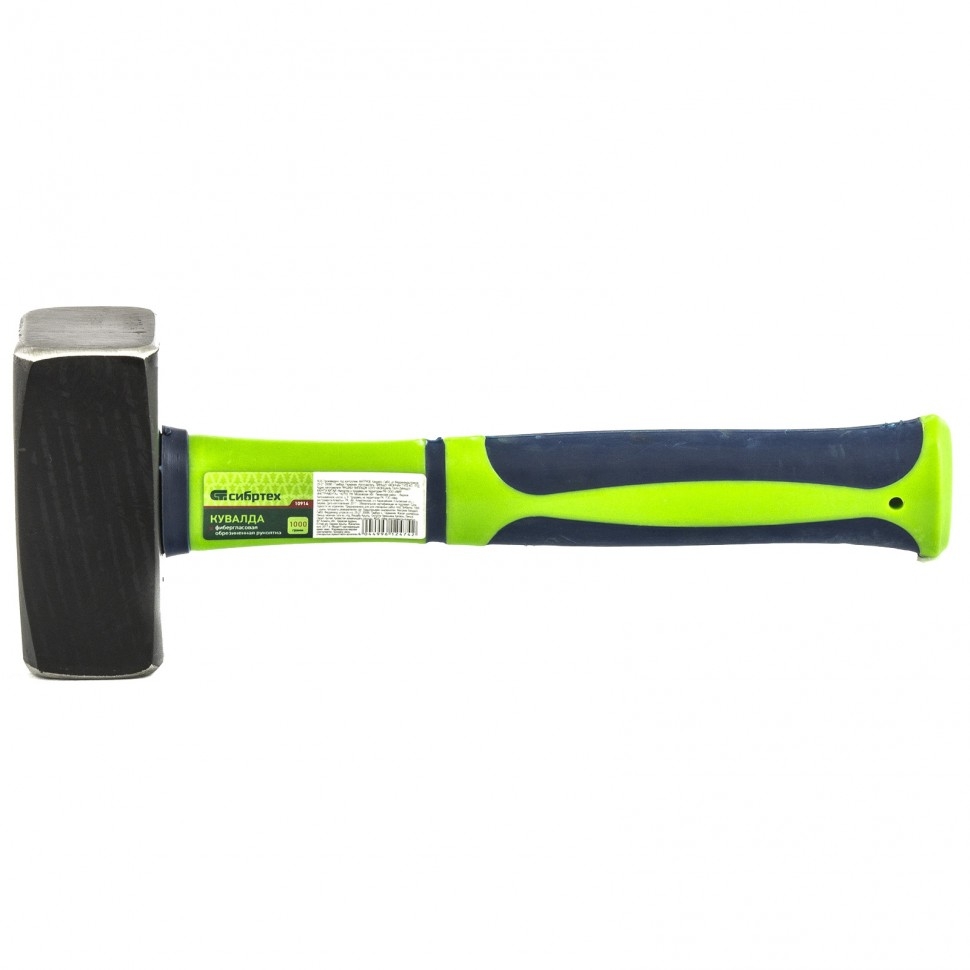 Кувалда Сибртех 10914 с бойком весом 1000 г, общей длиной 260 г и фибергласовой обрезиненной рукояткой предназначена для нанесения аккуратных и точных ударов. Применяется для забивания метизов, выравнивания или сгибания металлических поверхностей. Устойчива к деформациям и долговечна благодаря бойку, изготовленному методом ковки и отшлифованному с двух сторон. Кувалда подходит для использования в полупрофессиональной и бытовой сфере.Преимущества Прочность и надежность &mdash боек изготовлен из среднеуглеродистой стали 45, а рабочие части закалены токами высокой частоты и имеют твердость 40-45 HRC. Устойчивость к коррозии &mdash рабочая часть кувалды покрыта черным лаком. Надежная фиксация рукоятки &mdash прочная смола не позволяет бойку соскочить. Безопасность &mdash от головы не отколются мелкие кусочки, т.к. на ударных поверхностях сняты фаски. Низкая отдача &mdash вибрация от ударов поглощается двухкомпонентной пластиковой рукояткой с фибергласовым стержнем. Комфорт при работе &mdash благодаря резиновой в