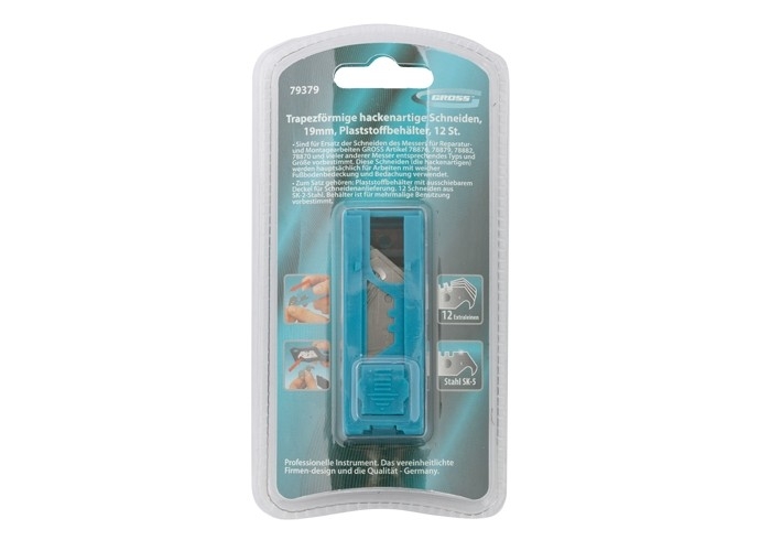 Лезвия 19 мм трапециевидные крючкообразные, SK5, пластиковый пенал, 12шт. Gross