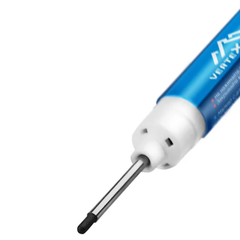 Маркер краска строительный, удлиненное перо, черный, VERTEXTOOLS предназначен для разметки в труднодоступных местах и глубоких отверстиях.