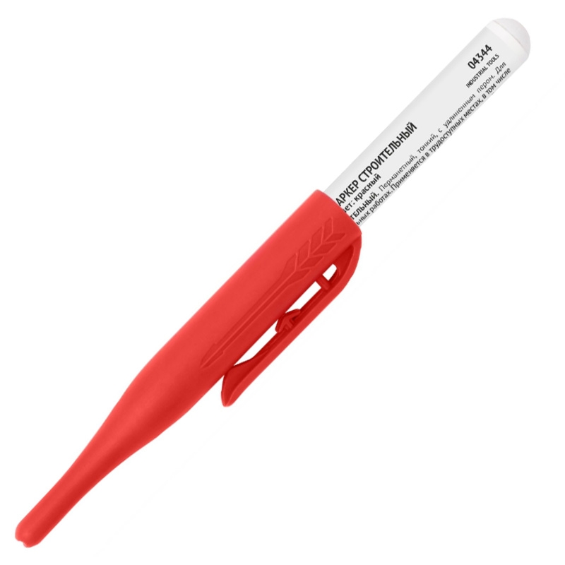 Маркер строительный перманентный тонкий, удлиненное перо, красный