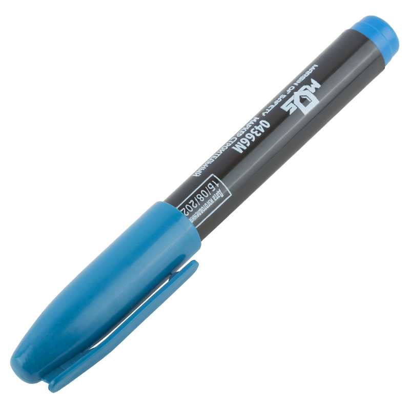 Маркер строительный, синий предназначен для нанесения чётких и долговечных надписей на различных поверхностях. Благодаря насыщенному цвету красные линии хорошо видны и устойчивы к стиранию, что делает маркер идеальным инструментом для строительных и ремонтных работ.
