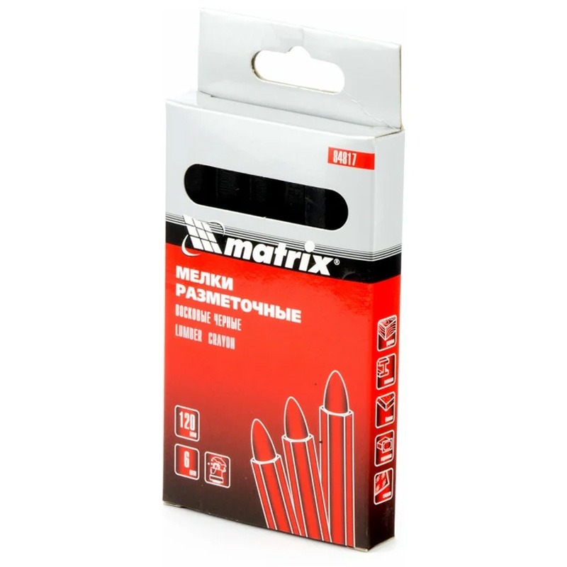 Мелки разметочные 120 мм восковые, черные 6 шт, Matrix подходят для нанесения линий и обозначений на различных поверхностях, включая гладкие и шероховатые, такие как бетон, металл, пластик, керамика и стекло. Длина мелка 120 мм.