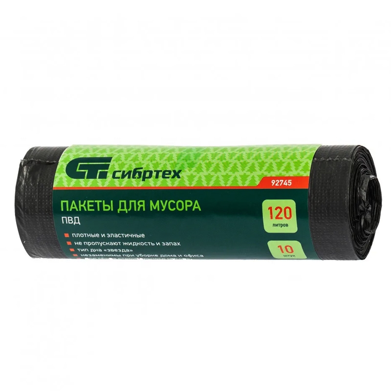 Мешки для мусора 120 л, пвд, короткий ролик, 10 шт, Сибртех предназначены для того, чтобы собирать и выбрасывать бытовые отходы и мелкий строительный мусор. У них плотное и усиленное дно в виде звезды, которое равномерно распределяет нагрузку и помогает избежать разрыва мешков.