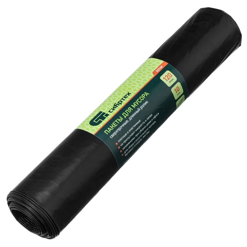 Мешки для мусора 120 л, пвд, сверхпрочные длинный ролик, 10 шт, Сибртех используют для сбора мусора на даче, стройплощадке и во время уборки территории. Они подходят для транспортировки бытового и строительного мусора, в том числе с острыми краями. Пакеты устойчивы к химическим веществам и агрессивным средам, поэтому в них можно выбрасывать практически любые отходы. Толщина пленки 60 мкм.
