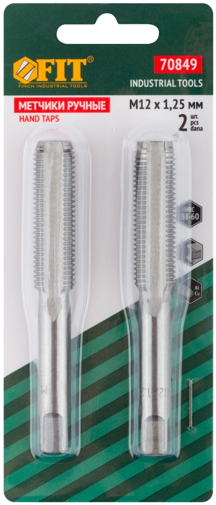 Метчики метрические. Набор 2 шт. (грубая и точная резьба). Для нарезания внутренней резьбы на изделиях из стали и цветных металлов. Закалка до HRC 58-60. Материал: легированная сталь. Упаковка: блистер.