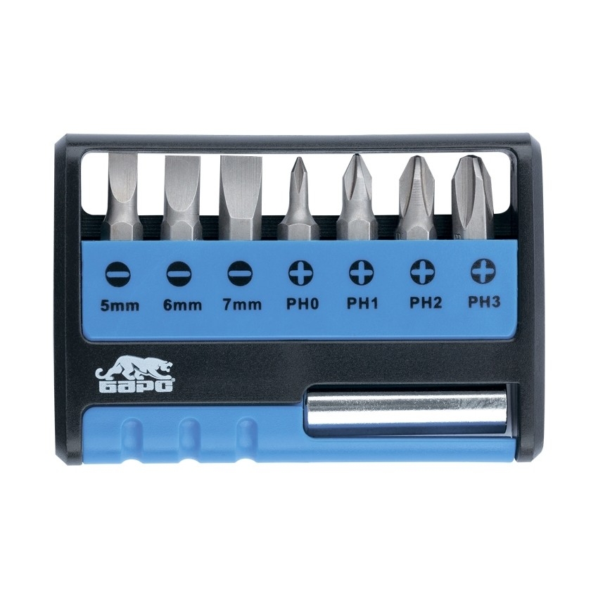 Профессиональный набор Барс арт. 13357 включает 7 бит и магнитный держатель. С его помощью можно производить монтажные и демонтажные работы с крепежом разного типа: PH 0, 1, 2, 3 и SL 5-7. Благодаря правильной геометрии оснастка не теряет эксплуатационных свойств даже при интенсивных нагрузках. Биты отличаются повышенной износостойкостью, т.к. изготовлены из прочной хромованадиевой стали твердостью 58-62 HRC. Для защиты от коррозии биты обработаны оцинковано-фосфатированным покрытием. Магнитный держатель гарантирует надежную фиксацию бит, исключает их выпадение. Магнитный наконечник позволяет зафиксировать биту в насечках резьбового крепежа, что гарантирует эффективную работу в труднодоступных местах. Пластиковый футляр не только обеспечивает удобство хранения и транспортировки бит, но и выступает в роли рукоятки при выполнении работ.