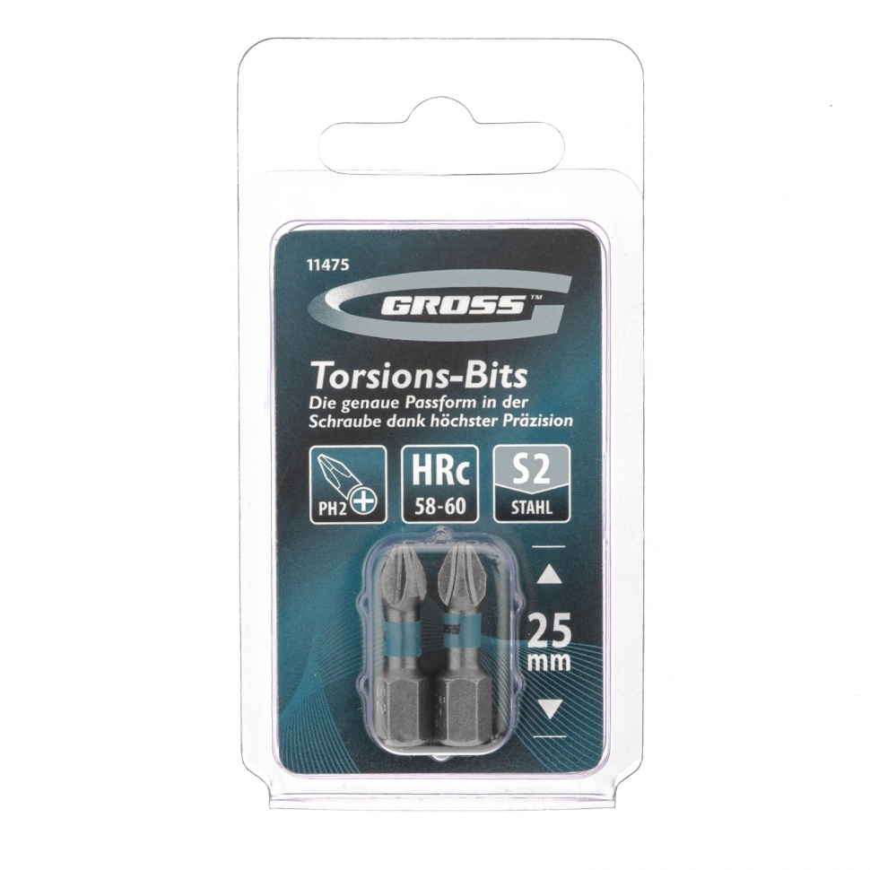 Набор бит торсионных PH2х25 мм, для ударн.шуроповертов 2шт Gross