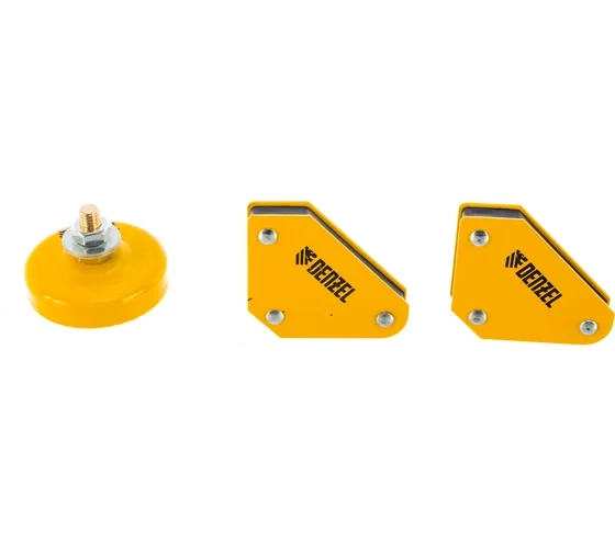 Набор из 2 фиксаторов магнитных для сварочных работ и магнитной клеммы "масса" Denzel