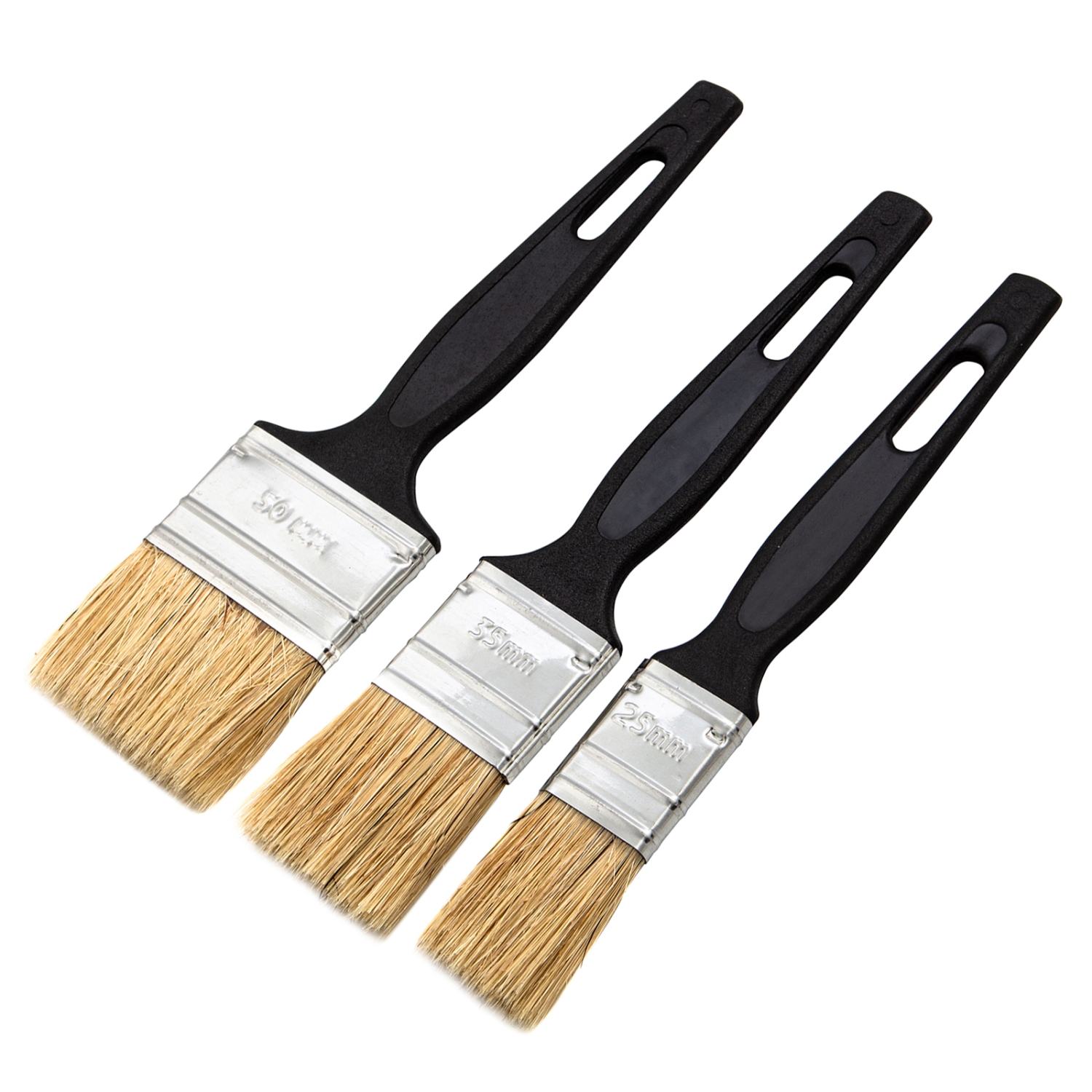 Набор кистей флейцевых 3 шт, натур.щетина, пластик.ручка 25мм,35мм,50мм Сибртех