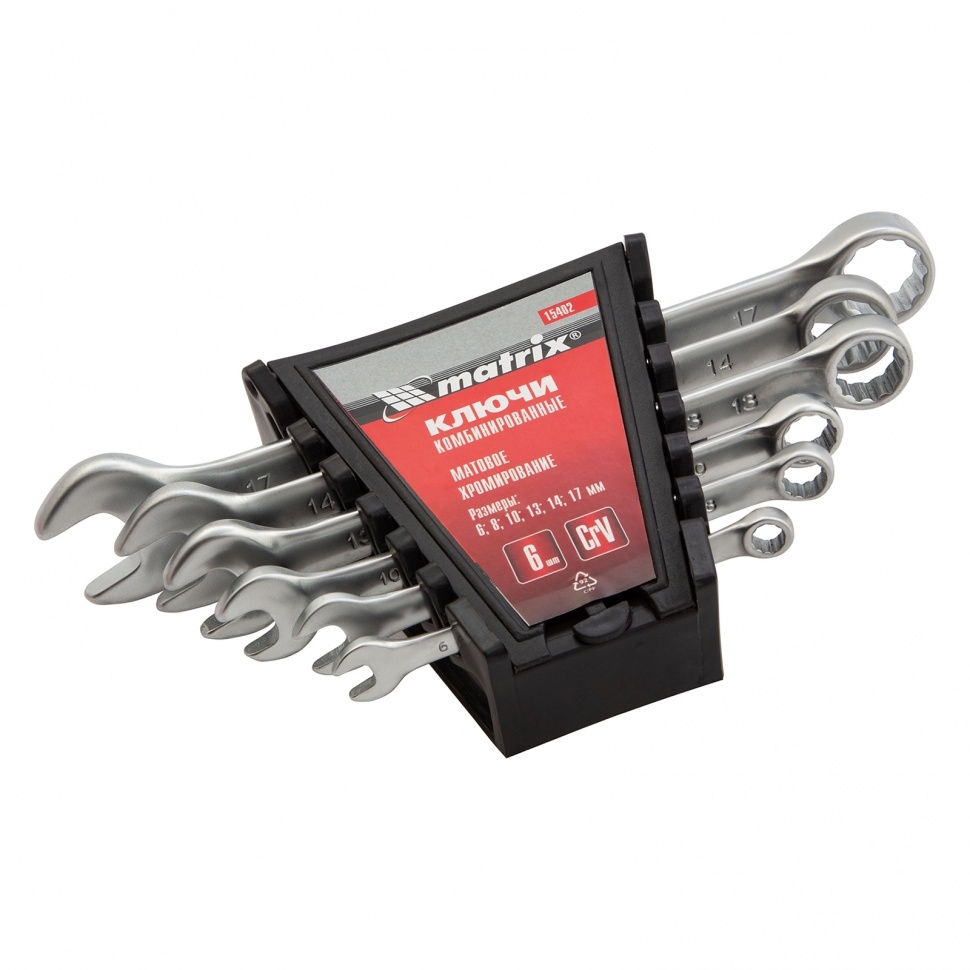 Набор ключей комбинированных 6-17 мм 6 шт CrV матовый хром Matrix