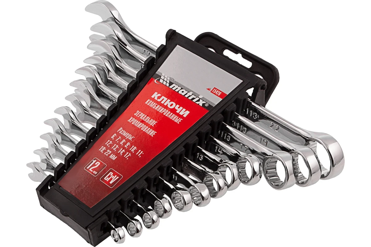 Набор ключей комбинированных 6-22 мм 12 шт CrV, полированный хром Matrix