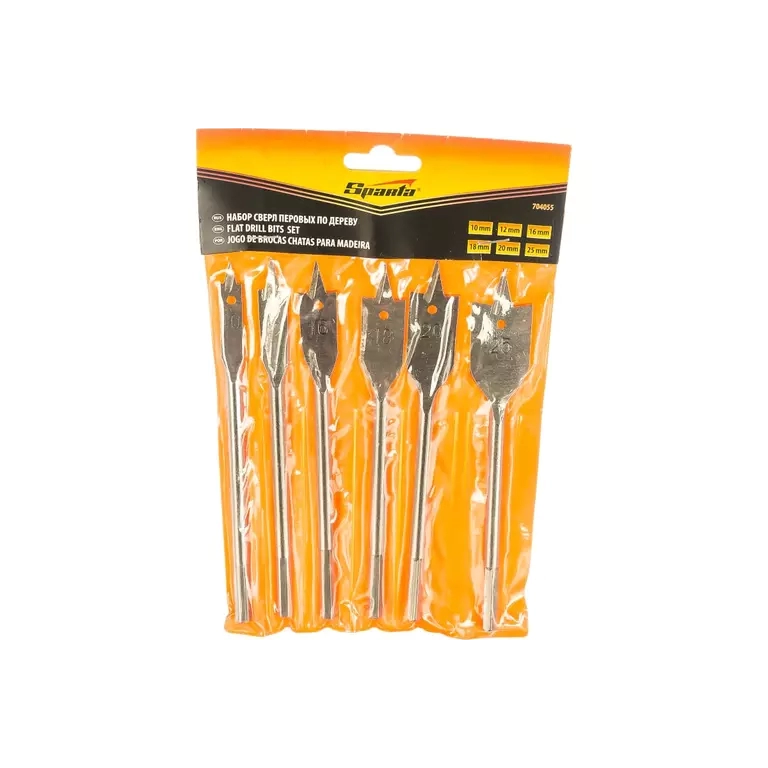Набор сверл перовых по дереву 6 шт (10-12-16-18-20-25 мм ) 6-гран. хвост. Sparta