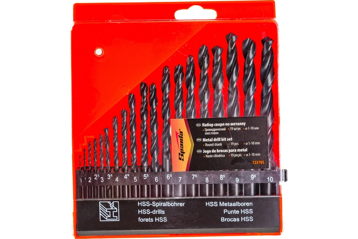 Набор сверл по металлу 1-10 мм (через 0.5 мм) 19 шт HSS цилиндр.хвостовик пласт.бокс Sparta