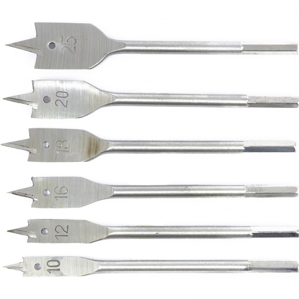 Набор сверло по дереву перовых 10-12-16-18-25 мм 6-гранный хвостовик Сибртех