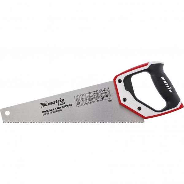 Ножовка по дереву для точных пильных работ, трехкомп.рук.,зуб 3D, каленый зуб 14 TPI 350мм PROMatrix