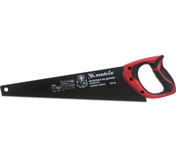 Ножовка по дереву, двухкомп.рук.,зуб 3D, каленый зуб 7-8 TPI тефл.покр.полотна 450мм Matrix