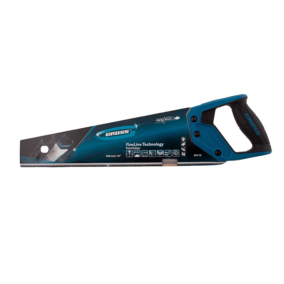 Ножовка по дереву PIRANHA, двухкомп.рук.,зуб 3D, каленый зуб, 11-12 TPI 400мм Gross