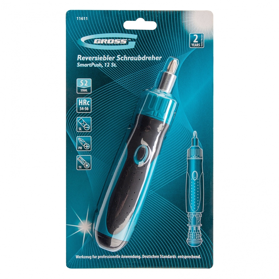 Отвертка реверсивная, механизм SmartPush, 12шт., S2, Gross