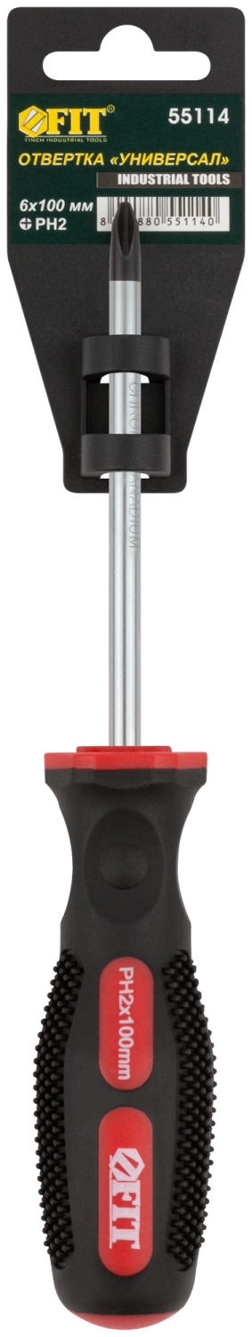 Отвертка Универсал, CrV сталь, прорезиненная ручка, Профи 6х100 мм РН2