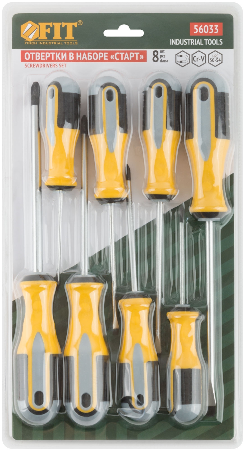 Отвертки Старт, CrV сталь, прорезиненная ручка, магнитный наконечник, набор 8 шт