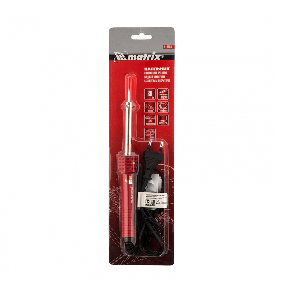 Паяльник, пластик.рук., мед.наконечник с долговеч.защит.покр., 30W Matrix