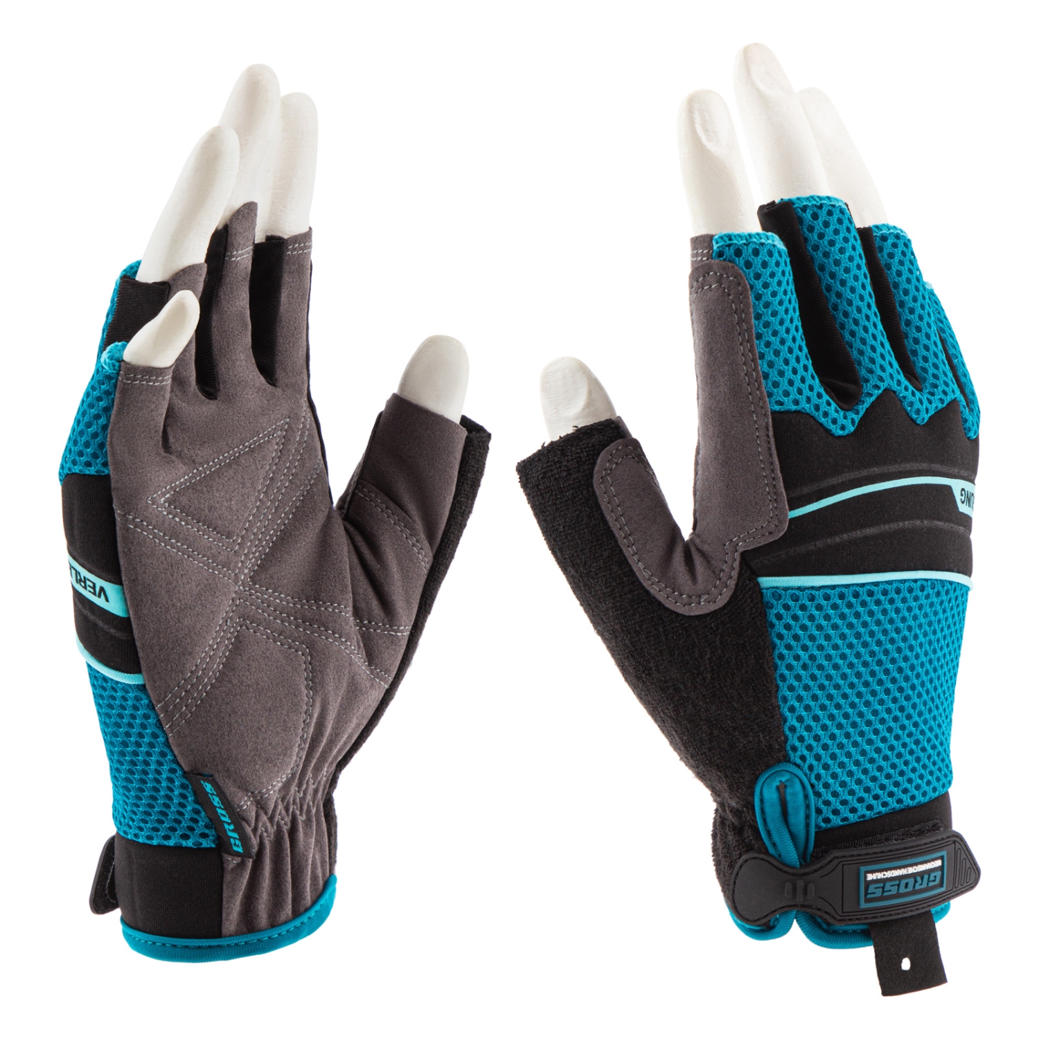 Комбинированные облегченные перчатки Gross AKTIV 90316 размера L, с открытыми пальцами, — часть экипировки для проведения ремонтных, строительно-монтажных работ или занятий активными видами спорта. Пенный протектор защищает руки от повреждений и образования мозолей. Открытые пальцы облегчают манипуляции с мелкими предметами. Перчатки имеют анатомический крой, плотно облегают кисти рук и не сковывают движения. Сетчатая вставка на тыльной стороне обеспечивает эластичность и воздухопроницаемость перчаток, поэтому руки в них не потеют.