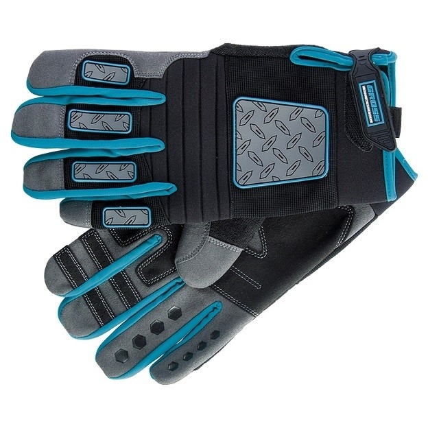 Универсальные комбинированные перчатки Gross DELUXE 90335 размера XXL защищают руки от механических воздействий и образования мозолей. Анатомически скроенные перчатки плотно облегают кисти рук и не сковывают движения. Силиконовые накладки на внутренней стороне пальцев препятствуют выскальзыванию инструментов и снаряжения из рук. Перчатки пригодятся при работе с ручным и электрическим инструментом, занятиях мото- и велоспортом, а также при участии в спортивных высокотравматичных играх. Износостойкость — благодаря прокладкам на пальцах и формованной накладке на ладонной части перчатки защищены от протирания. Возможность использования в холодный период — на внешней стороне пальцев находится резиновое покрытие, обеспечивающее термическую защиту. Надежная фиксация — манжеты снабжены лентами-застежками velcro, благодаря которым изделия не сползают с кистей рук.
