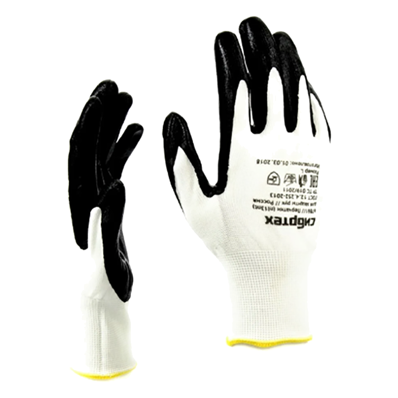 Перчатки полиэфирные с черным нитрильным покрытием, 15 класс вязки, размер L, Сибртех