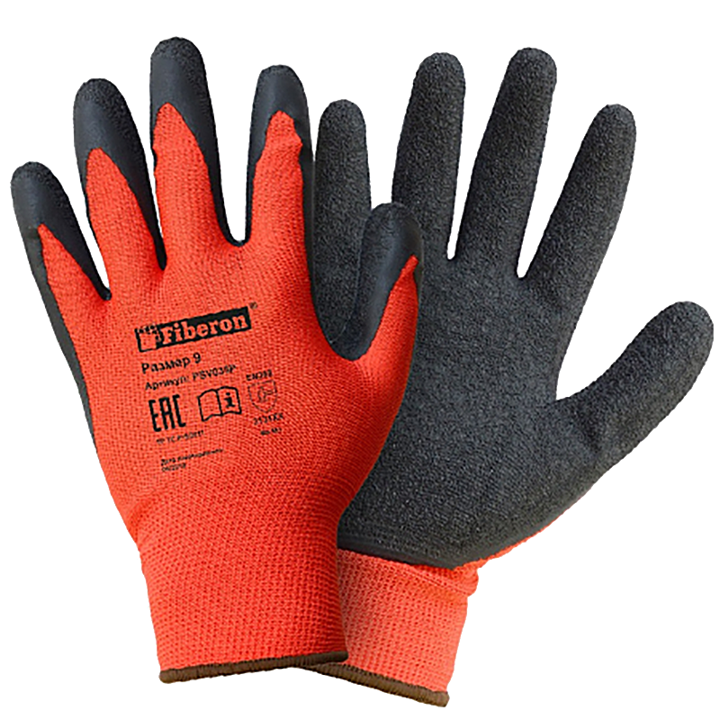 Перчатки полиэстеровые PSV035P с текстурированным латексным покрытием, размер L (9), Fiberon