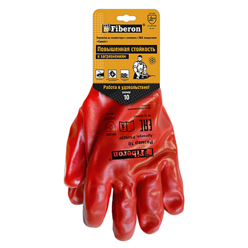 Перчатки Стойкость к загрязнениям Гранат хлоп.полиэст. PSV025P ПВХ-покр., размер 10 (ХL), Fiberon