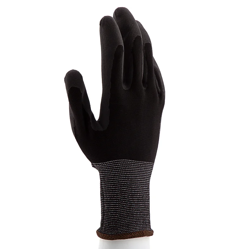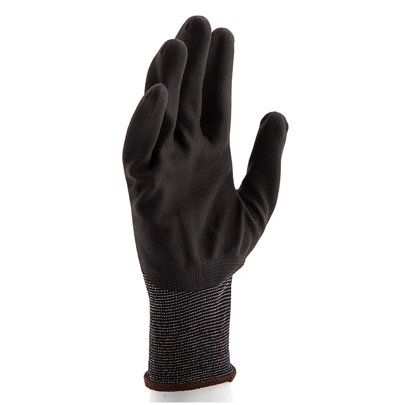 Перчатки изготовлены из полиэфирной пряжи, обладающей высокой прочностью на разрыв и устойчивостью к истиранию, поэтому прослужат долго. Тонкое полотно обеспечивает тактильную чувствительность пальцев, что облегчает выполнение работ, требующих высокой точности.