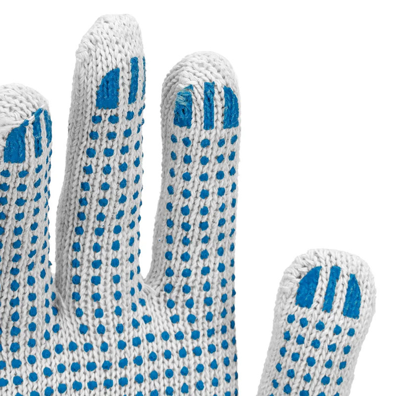 Перчатки созданы для защиты рук во время строительных и погрузочно-разгрузочных работ. Они изготовлены из 100% хлопка, а ПВХ-напыление типа «Точка» помогает надёжно удерживать инструмент и предотвращает его выскальзывание. Несмотря на то что перчатки относятся к экономичному классу, они хорошо защищают руки от грязи и механических повреждений. Натуральный состав перчаток обеспечивает воздухообмен, что делает их комфортными в использовании.