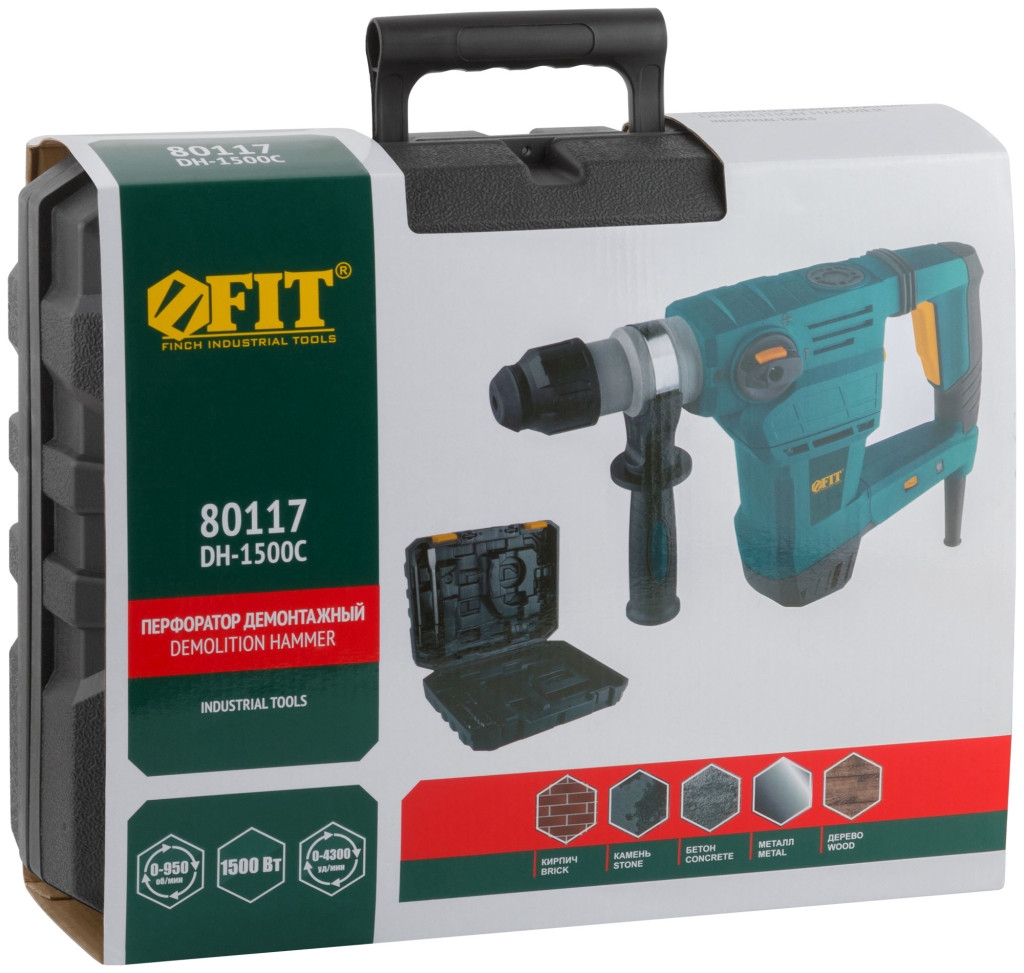 Перфоратор демонтажный 1500 Вт; 0-950 об/мин, 0-4300 уд/мин, 5Дж, 3реж., SDS-plus, БС щеток, 5,2 кг