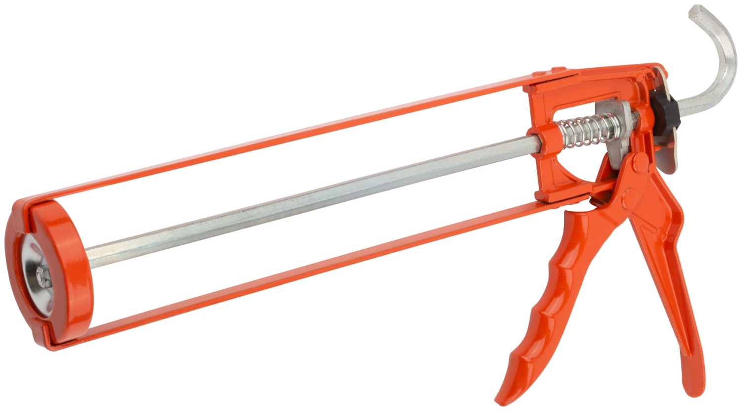 Скелетный, усиленный. Для выдавливания герметика из стандартной емкости 310 мл. Противокапельная система. Материал: инструментальная сталь, алюминий.
