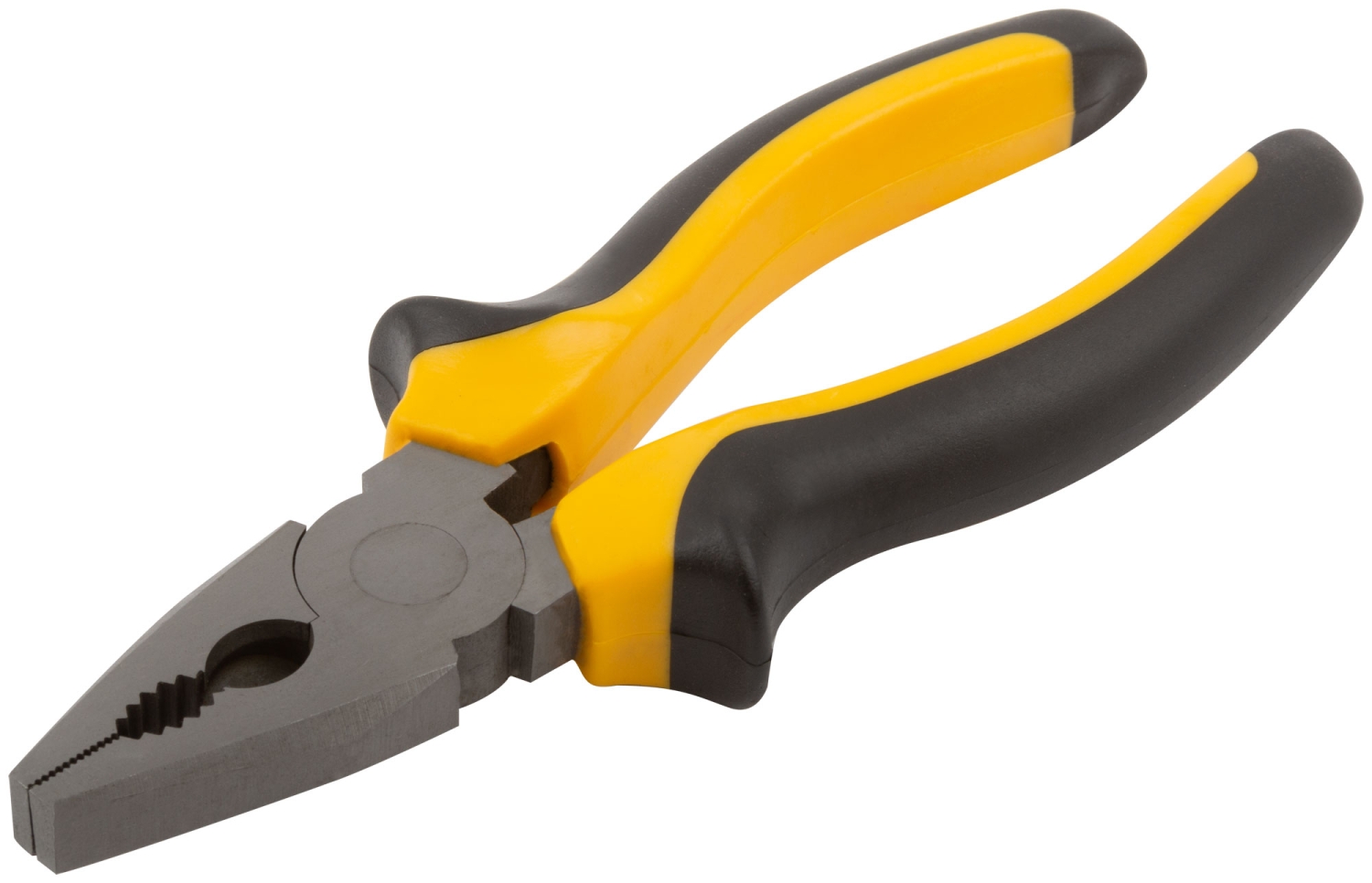 Плоскогубцы комбинированные. Материал: усиленная инструментальная сталь, молибденовое антикоррозийное покрытие, мягкие прорезиненные ручки. Упаковка: пластиковый подвес.