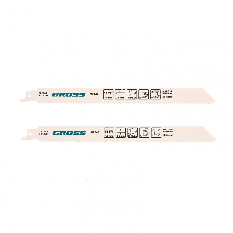 Полотна по металлу Gross 782104, 4416 - S1122BF, размером 210 x 1,8 мм, 2 шт., являются оснасткой для сабельной пилы. Они рассчитаны на профессиональное применение при проведении строительных и ремонтных работ. С помощью полотен можно осуществлять точный рез металлических заготовок толщиной до 8 мм.