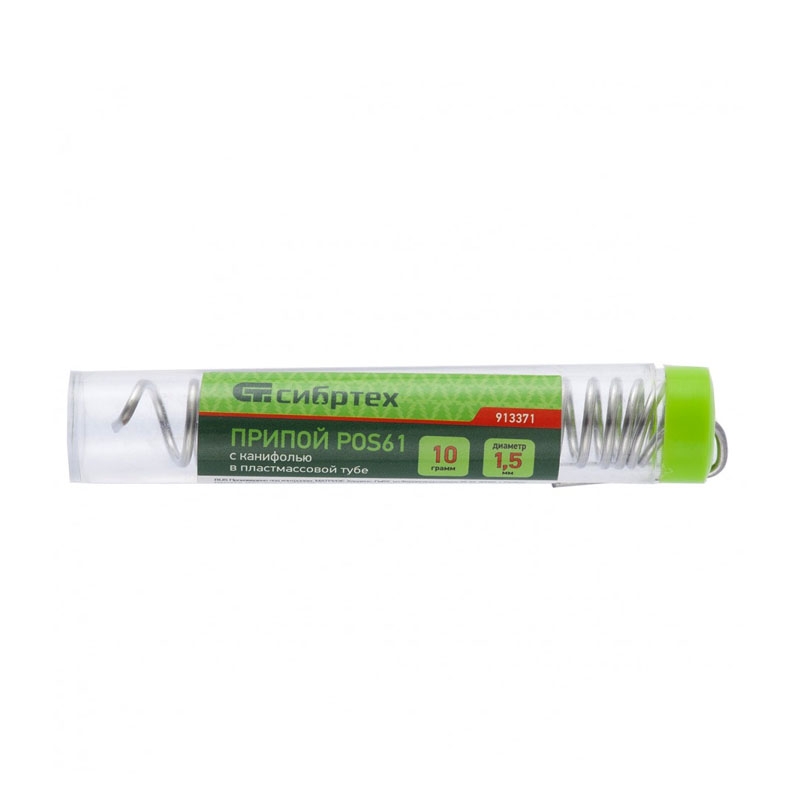 Припой с канифолью D 1 мм, 10 г, POS61, в пластмас.тубе Сибртех 913361 1 шт.