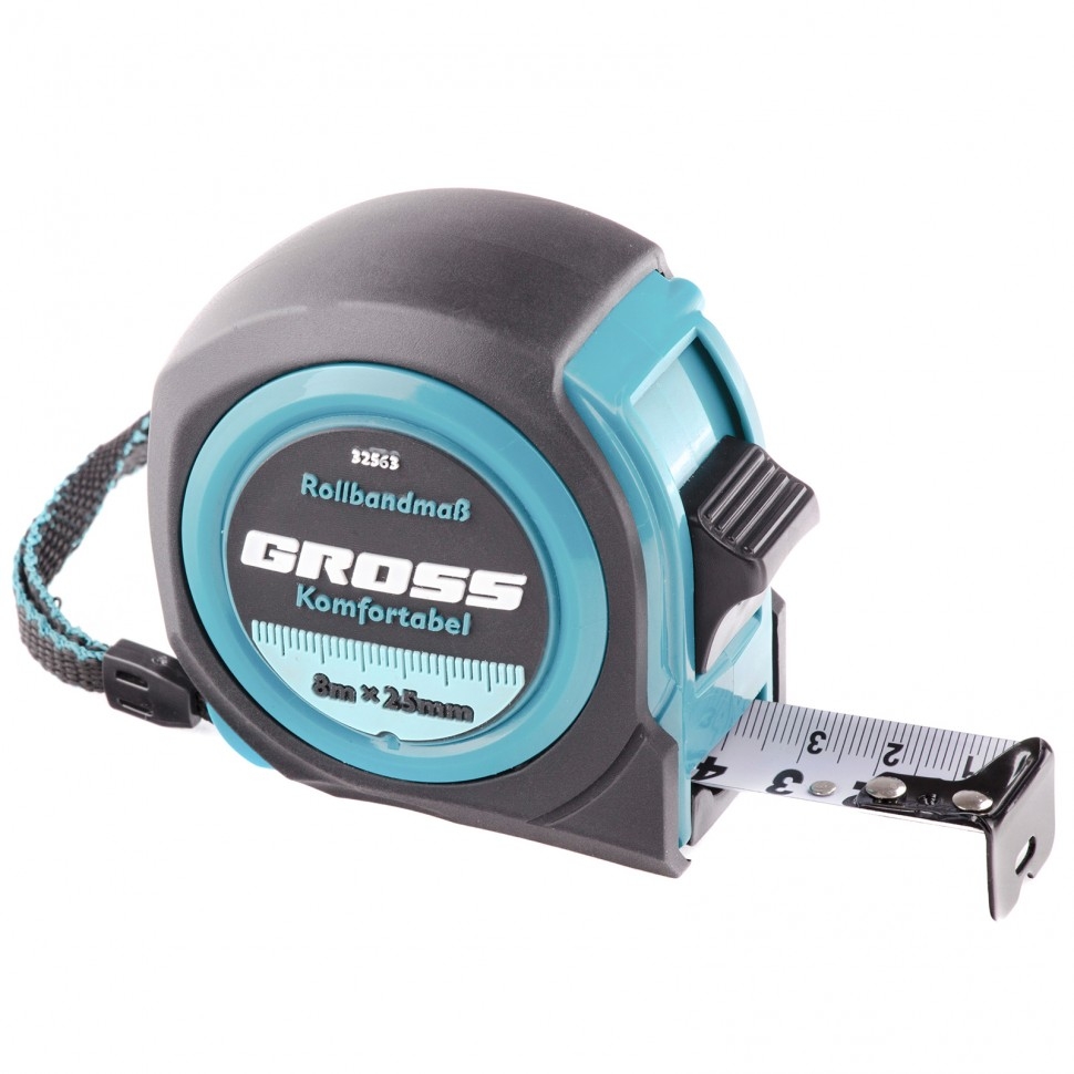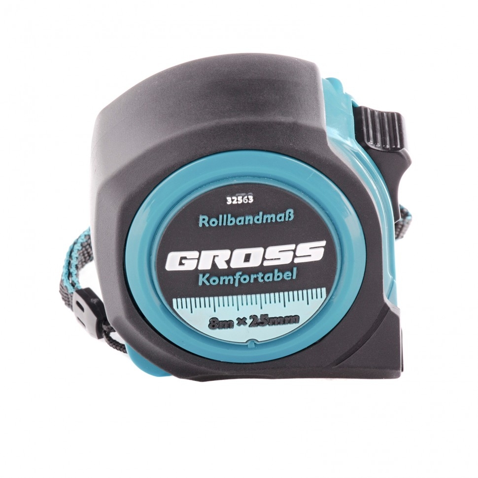 Рулетка Komfortabel 8м х 25мм. обрезинен.корп. Gross