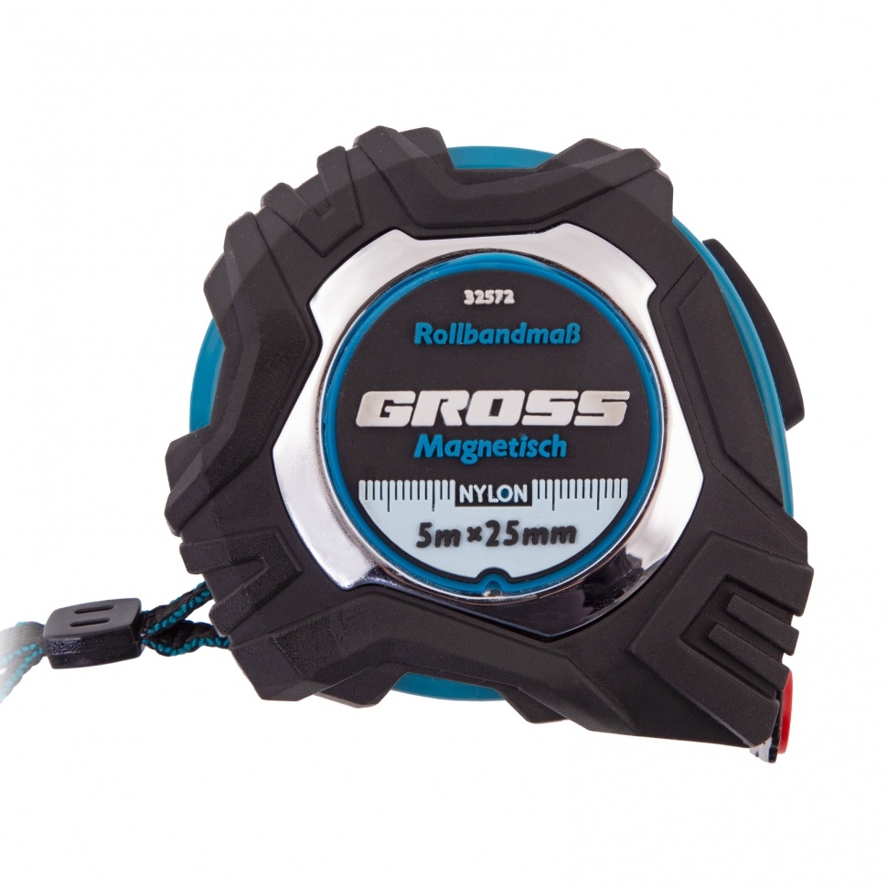 Рулетка Magnetisch,обрезин.корп.,магнит.зацеп, нейлон.покр., автоматич.фикс. 5м х25 мм Gross