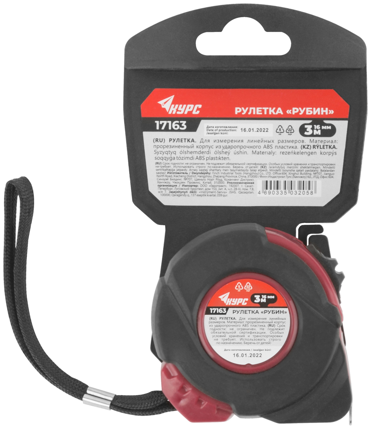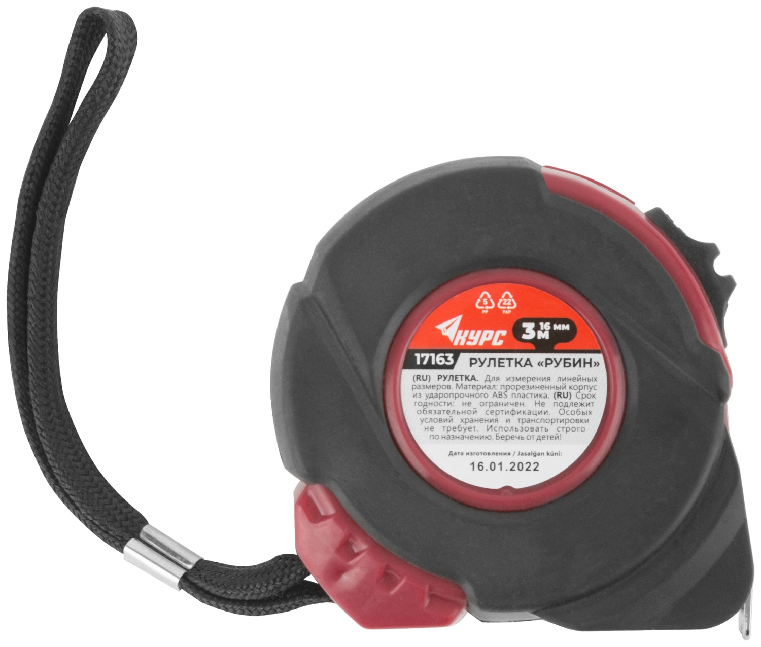 Рулетка Рубин, прорезин.корп., 3м х 16мм