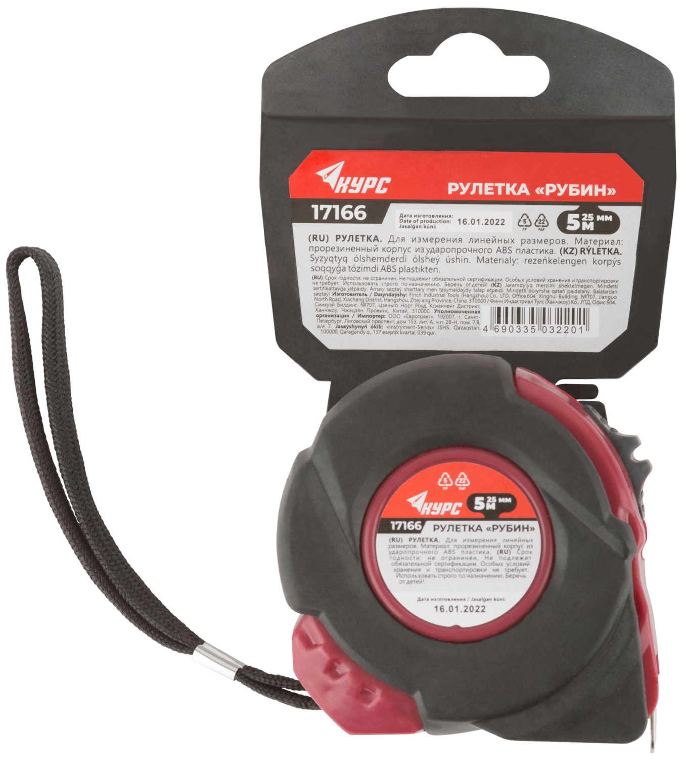 Рулетка Рубин, прорезин.корп., 5м х 25мм