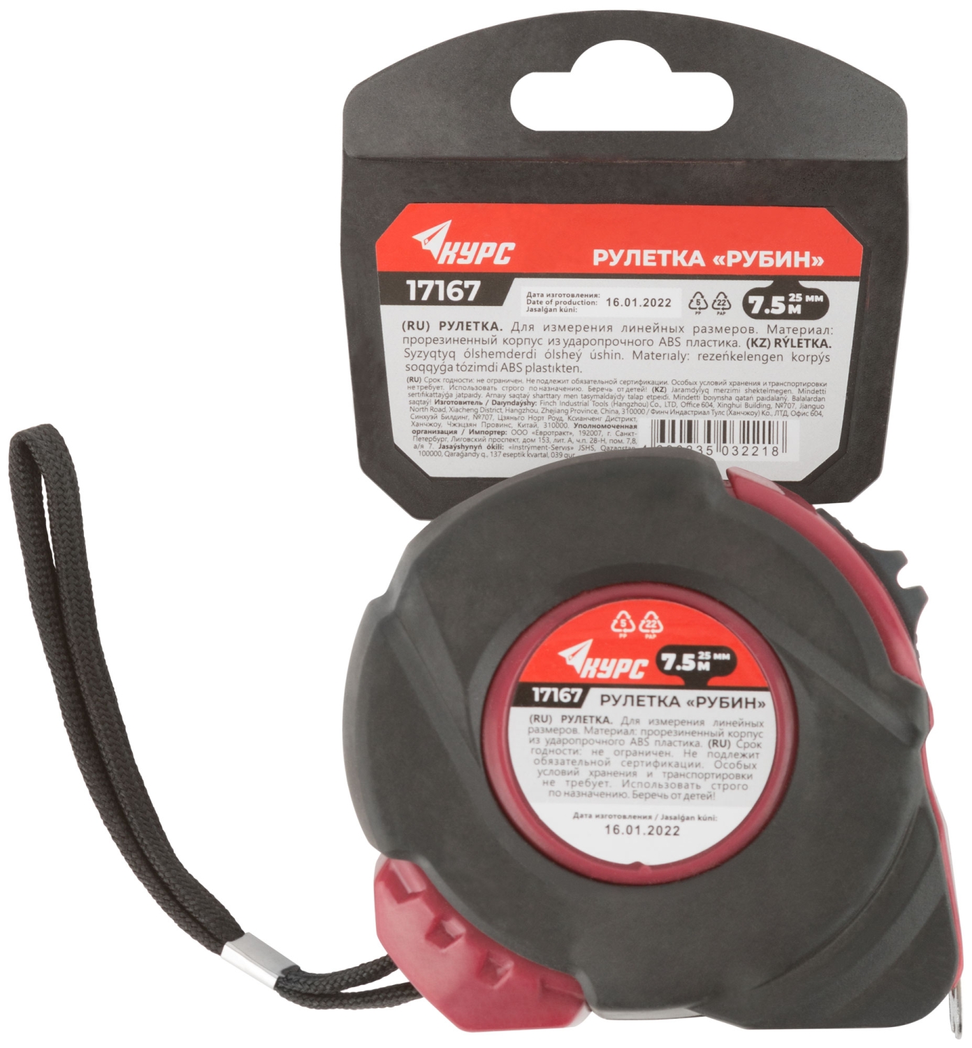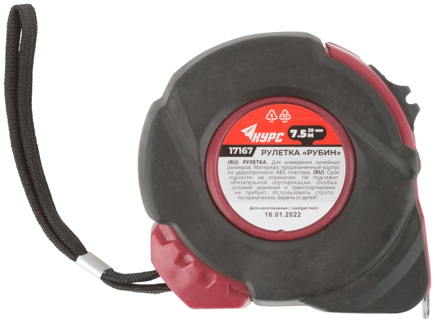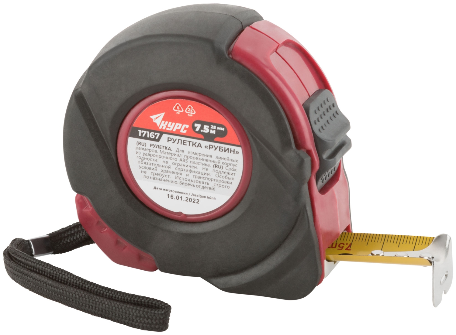 Рулетка Рубин, прорезин.корп., 7,5м х 25мм