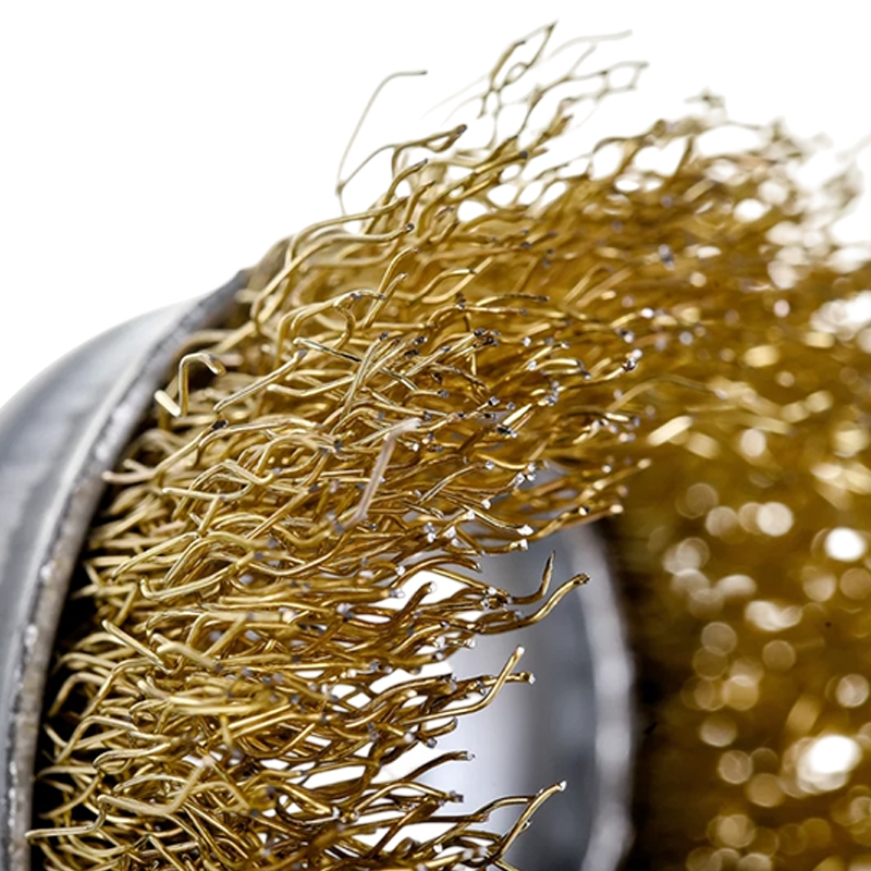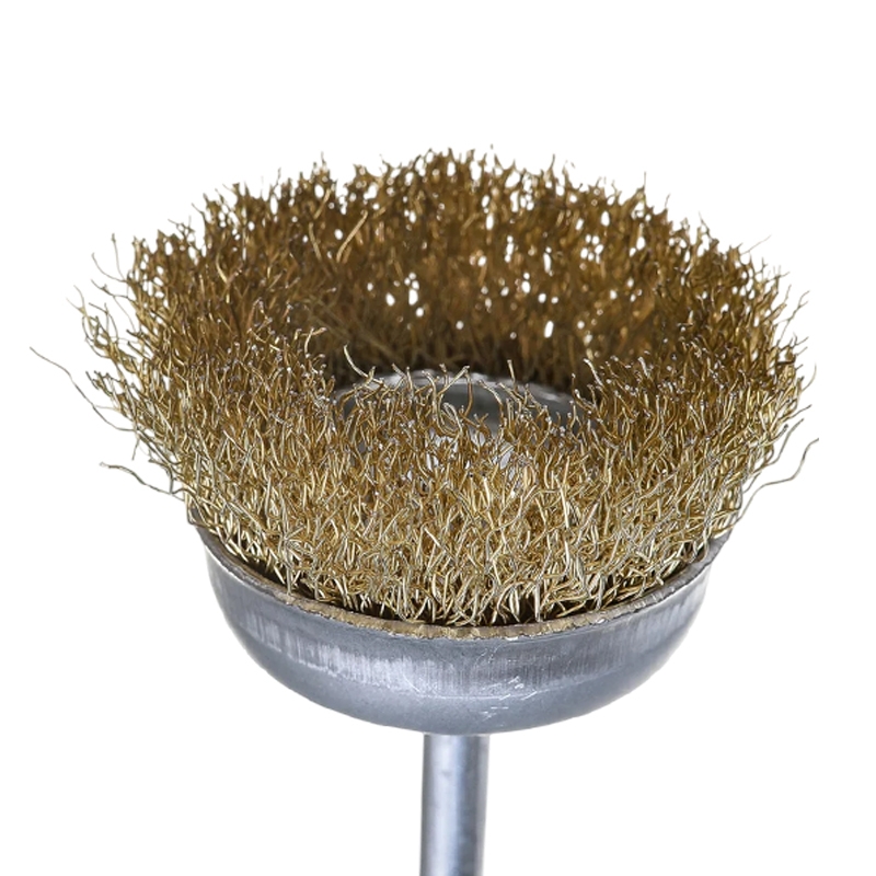Щетка для дрели, тип «Чашка» со шпилькой. Предназначена для мягкой качественной зачистки различных металлических и деревянных поверхностей, снятия ржавчины, удаления лакокрасочных покрытий и других загрязнений. Отлично подходит для обработки больших плоскостей. Форма «Чашка» обеспечивает хорошую площадь прилегания к поверхности. Мягкая зачистка, латунированная проволока 0,3 мм.